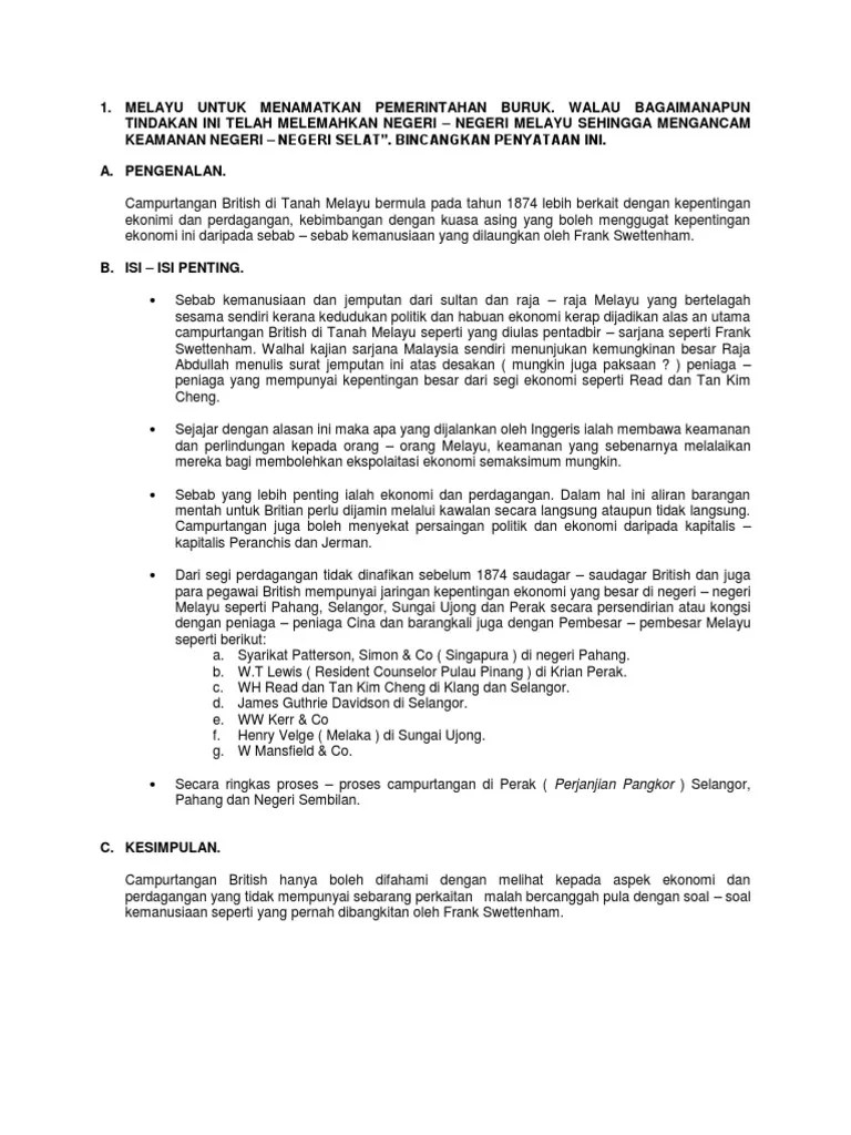 Kementerian perdagangan dalam negeri, koperasi dan kepenggunaan. Campur tangan british bermula ekoran daripada perbalahan di antara raja abdullah dan raja mahadi yang bersaing untuk menguasai daerah klang yang kaya dengan bijih timah. 3.3 pemodenan johor melambatkan campur tangan british. Sejarah, tingkatan 2, pmr, ulangkaji, campurtangan british, selangor, perak, negeri sembilan, pahang, tanah melayu, tengku kudin, raja mahadi, tanjung. Setelah berjaya ,british memperkenalkan pelbagai dasar bertujuan mengukuhkan kedudukan.