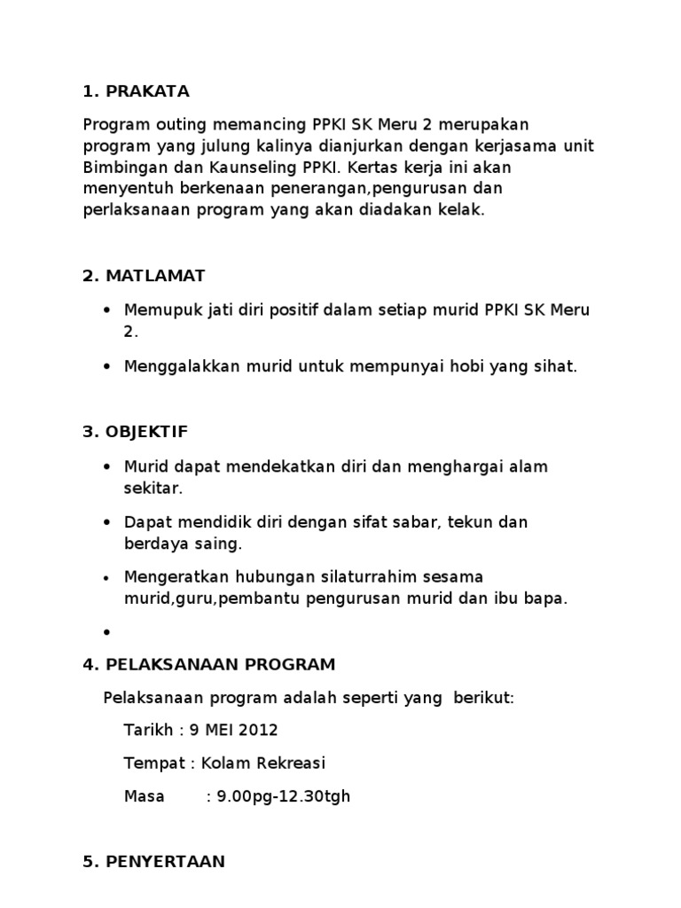 Kertas Kerja Pertandingan Memancing - Pertandingan memancing anjuran majlis perbandaran temerloh dengan pihak berkuasa tempatan ( mala ) malaysia kertas kerja ini disediakan untuk member maklumat persiapan kepada jabatan dan pasukan.. 9.0 ahli jawatankuasa pelaksana pertandingan mewarna. Kertas kerja pertandingan antara kelas. Dokumen.tips ilustrasi kertas kerja kemerdekaan2. Pertandingan memasak dianjurkan bagi mengisi program selepas upsr yang dianjurkan bagi melibatkan murid dalam aktiviti pengajaran dan pembelajaran di luar kelas. Guys, ini merupakan contoh kertas kerja excel + macro yang bisa digunakan untuk membantu mempercepat pekerjaan kita.