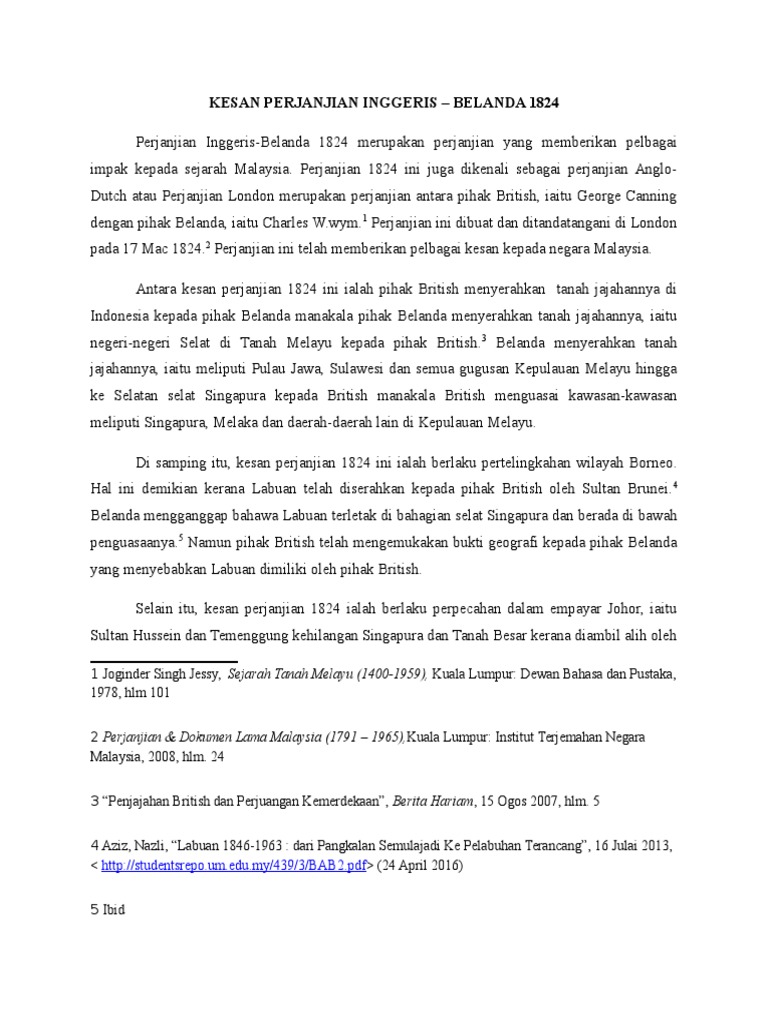 Perjanjian London from imgv2-1-f.scribdassets.com 4 perjanjian ini dimeterai berdasarkan kepentingan ekonomi british dan belanda di rantau asia tenggara. Termeterainya perjanjian tersebut merupakan peristiwa paling penting dalam sejarah tanah melayu dan juga indonesia. Perjanjian london 1824 menggariskan tiga aspek terpenting iaitu pembahagian wilayah perdagangan dan kewangan. Faktor yang menyebabkan termeterainya perjanjian london 1824. Doc sejauh manakah perjanjian british di tanah melayu menyebabkan mereka menjadi kuasa tunggal 1824 1874 nurul shafiqah shafif academia edu perjanjian inggeris belanda 1824 pekhabar faktor2 perjanjian inggeris belanda La mengaku tidak akan membuka sebarang tempat di semenanjung tanah melayu ataupun menandatangani sebarang. Doc sejauh manakah perjanjian british di tanah melayu menyebabkan mereka menjadi kuasa tunggal 1824 1874 nurul shafiqah shafif academia edu. Perjanjian london 1824 dan kesannya terhadap alam melayu by aishah shyakirah faktor yang menyebabkan termeterainya perjanjian london 1824 perjanjian inggeris belanda 1824